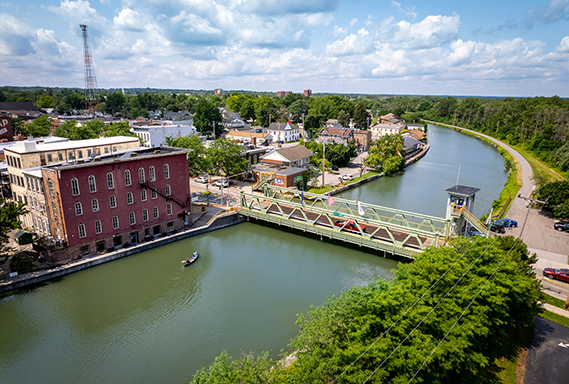 - Highlights: Medina Triennial public art · Main Street redevelopment · Albion canal heritage · Brockport pedestrian bridge and SUNY campus connection · Dinner and evening discussion